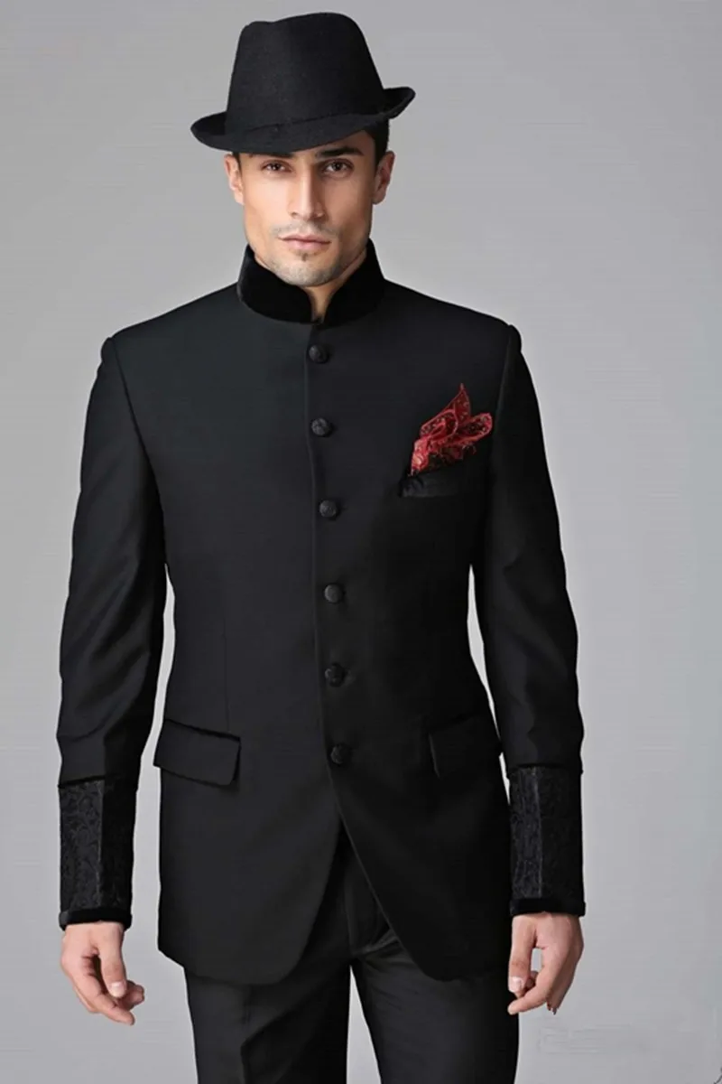Get coupons  Six Buttons Groomsmen Mandarin Lapel Groom Tuxedos Black Men Suits Wedding suit men terno masculino for cheap price to grab big discount, you can buy 2 piece Hot Product  Six Buttons Groomsmen Mandarin Lapel Groom Tuxedos Black Men Suits Wedding suit men terno masculino then you get discount 35% OFF